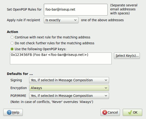 Setup OpenPGP Rules